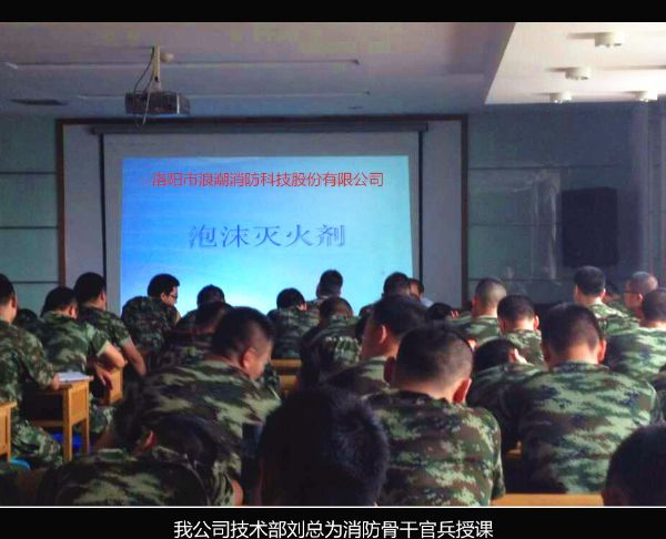此次參加培訓(xùn)的消防官兵為陜西省消防總隊,各市消防支隊和各消防大隊的骨干人員;公司劉總在此次培訓(xùn)中,主要講述了我公司現(xiàn)在企業(yè)發(fā)展規(guī)模和狀況、企業(yè)的產(chǎn)品種類、新研發(fā)的滅火劑產(chǎn)品的使用及產(chǎn)品科技創(chuàng)新能力。同時講解了各種類型滅火劑的的滅火原理、使用范圍、主要成份及滅火特性等內(nèi)容。